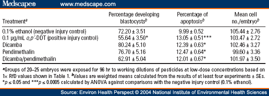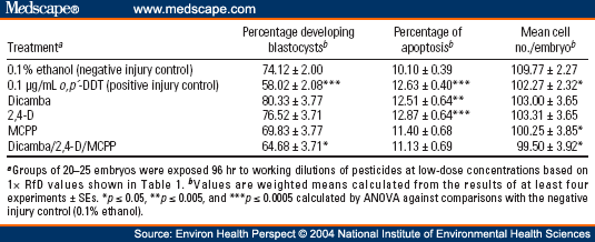 Cite this: Low-Dose Agrochemicals and Lawn-Care Pesticides Induce Developmental Toxicity in Murine Preimplantation Embryos - Medscape - May 01, 2004.