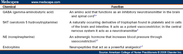 "Chronic neuropathic pain is the net result of sensory input greater than the central inhibitory response" the uniqueness of chronic neuropathic pain is that its multiple etiologies share a common pathway."[5] The pain signal is processed via the dorsal horn of the spinal cord and transmitted in the central nervous system (CNS). After an injury, the healing process may be altered and actually increase rather than decrease the pain response. The development of dendritic growth (neuroplasticity) can increase the number of alternate neural pathways, which may actually increase the sensitivity to pain. These alternate pathways may have an accumulation of Na+ channels that become "leaky" and fire spontaneously or with very little provocation. "Neurons fire, or spontaneously produce electrical impulses on a regular basis" they may fire more or less slowly depending on whether or not they are excited or inhibited from firing by various types of chemicals called neurotransmitters" naturally occurring chemicals i.e. substance P, glutamate and aspartate excite neurons responsible for pain transmission" drugs that block the action of these substances diminish our awareness of pain. Our body's narcotic chemicals in the brain and the spinal cord inhibit the transmission of pain impulses."[6] By decreasing the rate of impulse firing, these chemicals can help modulate the pain response. The chemicals or neurotransmitters involved are commonly affected by anticonvulsants, antidepressants, neuroleptics, and antiarrythmics (ie, betabockers, sodium channel blockers, acetycholinesterase inhibitors) ( Table 2 , Table 3 ). This very simplified explanation helps provide rationale for the diagnostic criteria and the management of neuropathic pain.