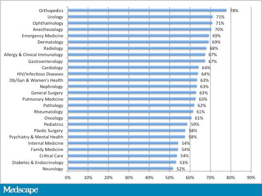 The impact of the ACA. Of interest, the ACA dropped from third place in importance to fifth this year among all physicians, although differences varied by specialty. For example, dermatologists and radiologists rated it second this year. And among those in primary care, family physicians ranked it at fifth place and internists at eighth place. In the 2014 survey from the Physicians Foundation, although the majority gave the ACA a negative grade, more female physicians gave the ACA a positive one (30.7%) compared with males (22.8%), and more PCPs (30.9%) than specialists (22.4%).[15] But even if many physicians are ranking the ACA lower this year as a direct cause of burnout, certainly its fallout has increased the impact of the other important burnout causes: bureaucratic tasks, too many hours at work, insufficient income, and increasing computerization.