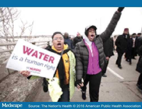 Protesters highlight the importance of clean water for health during a mile-long march in Flint, Michigan, in February. Because of a change in the city's water supply and aging pipes, residents have been potentially exposed to lead in their drinking water.